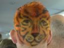 The unexpected face of a tiger caught my eye as we travelled towards Glasgow. I can not now remember where along the journey I noticed the haircut staring back at those behind its owner.