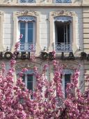 I captured this beautiful photo standing on edge of a busy Lyon street. The iconic French building is a hotel with a popular café below. Trees bursting with blossom line the edge of the café’s outdoor seating area. An almost stereotypically French scene.