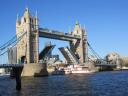 London’s Tower Bridge opening to let a boat pass.